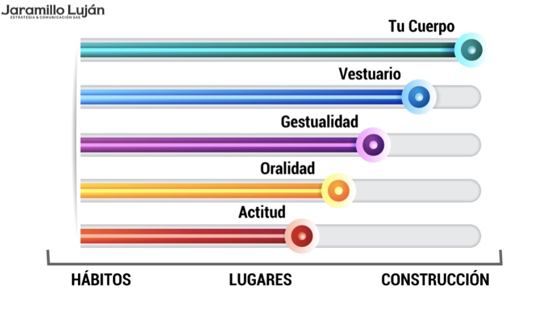 Desde nuestra aproximación técnica consideramos que una marca personal en términos de imagen pública se construye por el cruce de las variables: cuerpo, vestuario, oralidad, gestualidad y actitud con los hábitos de cada persona, los lugares que hacen las veces de plaza ideal concordante y la construcción simbólica que hace cada persona de códigos de identidad particulares.
